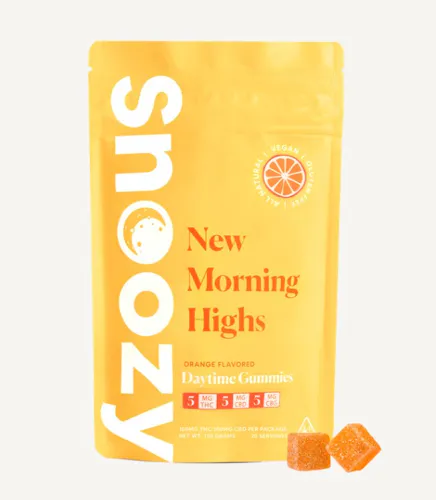 Waking up is hard sometimes. Find inspiration with Snoozy New Morning Highs gummies. New Morning Highs help you greet the day with a calm mind, putting a pep in your step that will last well into your day. A perfect complement to Snoozy Sleep with Benefits. Each gummy contains cannabinoids such as THC, CBD, and CBG. Formulated with organic and all-natural ingredients to help you seize the day.
