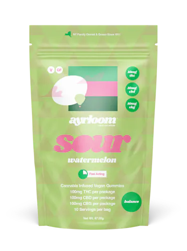 Sour Watermelon | THC : CBD : CBG Gummies | 10pk | 100mg